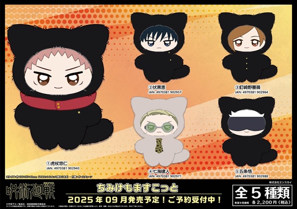 「呪術廻戦」のちみけもますこっとは、2025年9月に発売予定。価格は各2,200円(税込)となっています。
